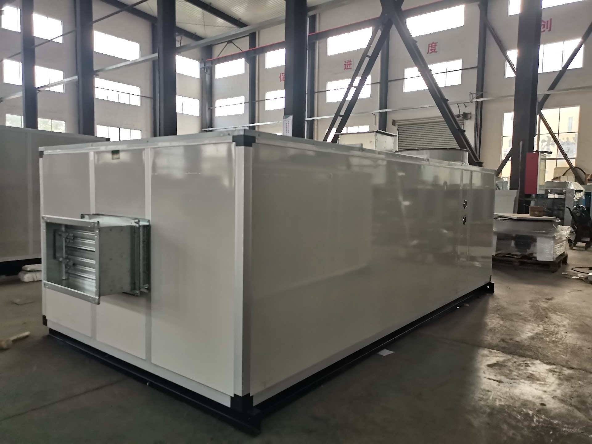 整體式機(jī)組設(shè)計(jì),結(jié)構(gòu)緊湊,精心設(shè)計(jì)之機(jī)組框架,簡單輕巧,外觀典雅大方,操作空間大,機(jī)組均可實(shí)現(xiàn)常規(guī)不超寬不式運(yùn)輸。機(jī)組結(jié)構(gòu)件的自動噴涂線全過程處理及噴塑、鋁合金框架、高壓發(fā)泡彩鋼保溫面板以及戶外型特的防雨結(jié)構(gòu)設(shè)計(jì),確保機(jī)組戶外使用的防腐、防銹,無漏雨之虞。